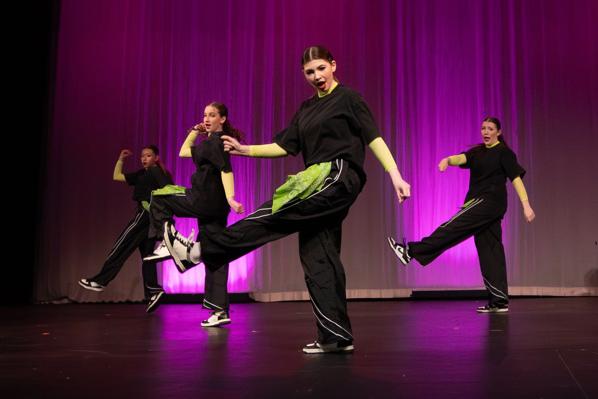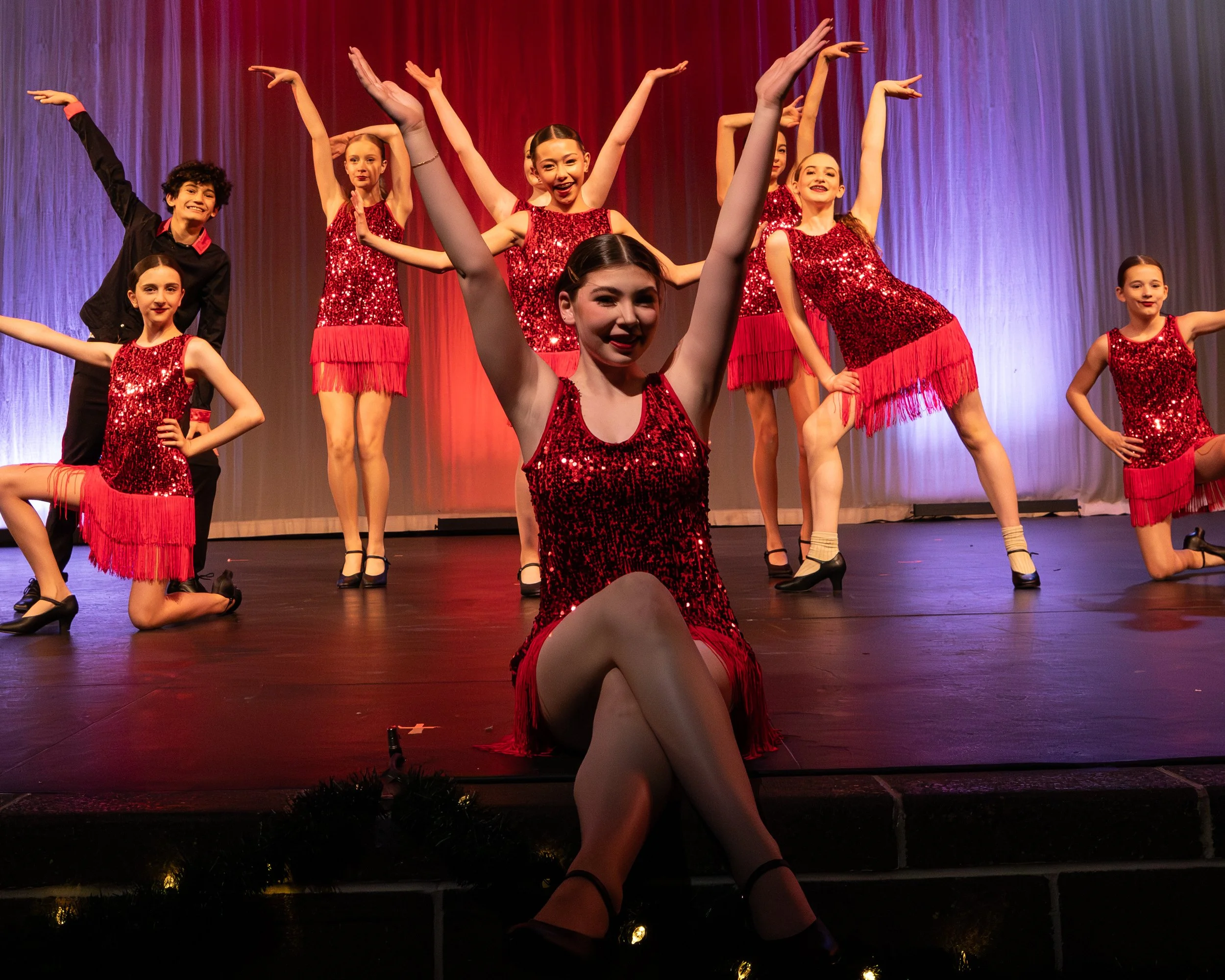 Throughout the year, our company dancers hone their skills at two dance conventions, master classes and four competitions, gaining valuable experience and performing their choreography on a variety of stages. They also have the opportunity to shine at our Winter Showcase and our Sprint Annual Recital, which features three showcases highlighting the talents of our Elite, Advanced Company, Junior, and Mini teams! Particpating in Golden events, such as the Candlelight Performance and annual Holiday Parade is always fun. The Hearts Charity Benefit in the Spring is our favorite performance of the year that is showcased at the Lakewood Cultural Center and it is a chance to give back to our community.